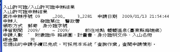 最後在按查詢選到你要進入的山區...之後在按確定你會得到下面的資訊