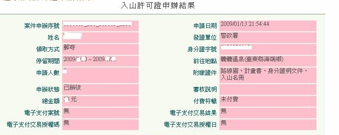 所以只能靠網路辦理入山證了...如果不這樣辦還要跑到關山警局辦,不瘋了才怪