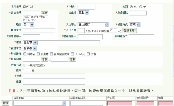並註明辦理入山申請之後在拿去寄掛號