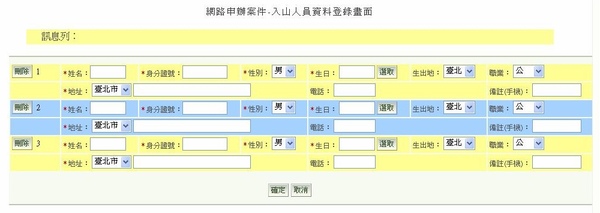 記得把要申請入山人員的資料Key進去在按確定就行了
